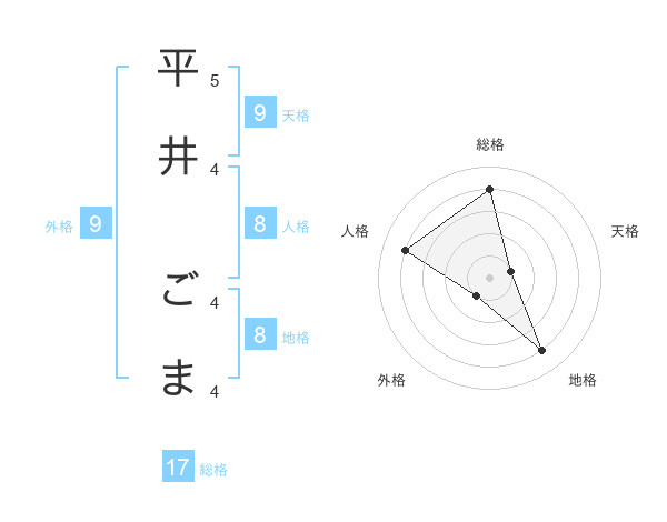 平井 ごまさんの総格は17画の4点!