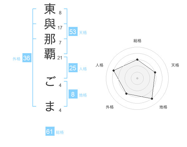 東與那覇 ごまさんを姓名の画数から五運を鑑定