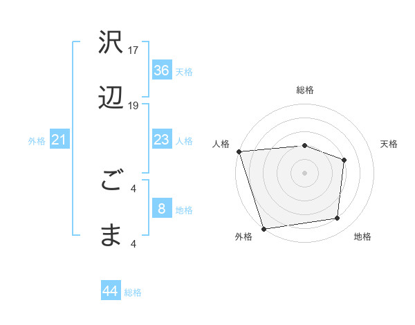 沢辺 ごまさんの総格は44画の2点!