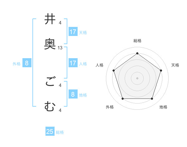 井奥 ごむさんの総格は25画の4点!