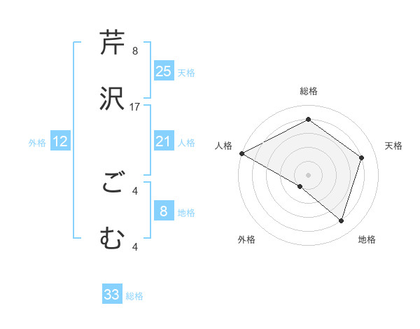 芹沢 ごむさんの地格は8画の4点!