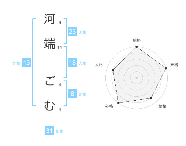河端 ごむさんの総格は31画の5点!