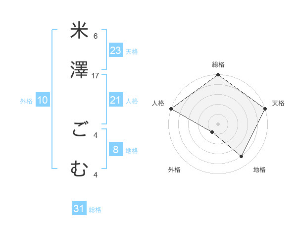 米澤 ごむさんを姓名の画数から五運を鑑定