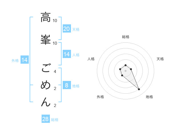 高峯 ごめんさんを姓名の画数から五運を鑑定