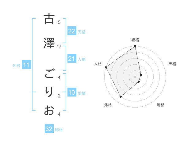 古澤 ごりおさんの外格は11画の4点!