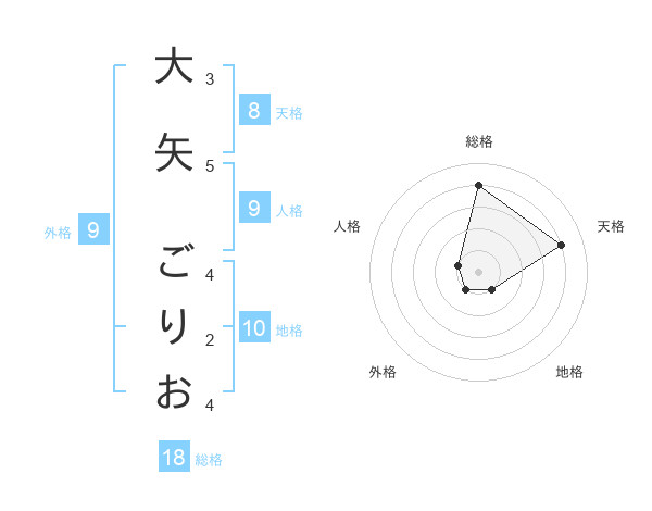 大矢 ごりおさんを姓名の画数から五運を鑑定