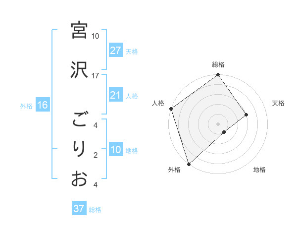 宮沢 ごりおさんの外格は16画の5点!