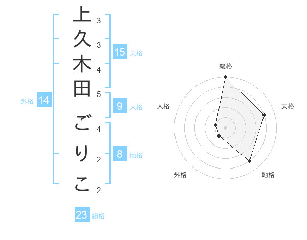 上久木田 ごりこさんを姓名の画数から五運を鑑定