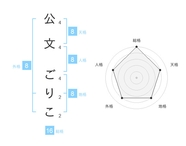公文 ごりこさんの天格は8画の4点!