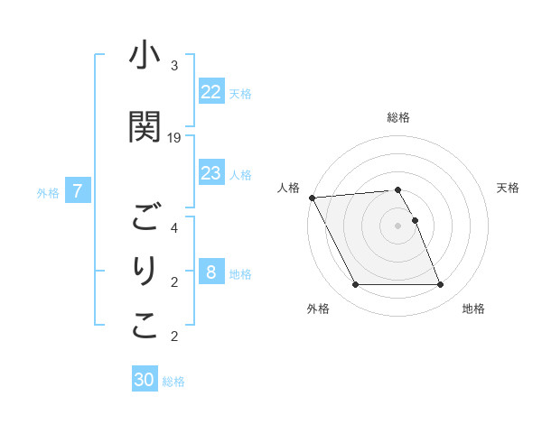 小関 ごりこさんを姓名の画数から五運を鑑定