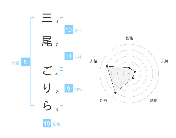 三尾 ごりらさんの総格は19画の1点!