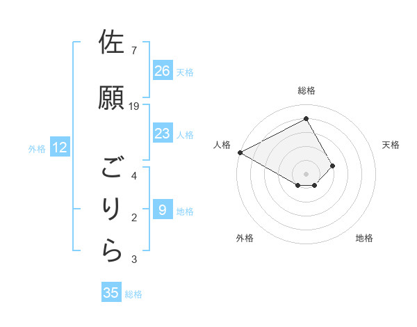 佐願 ごりらさんの総格は35画の4点!
