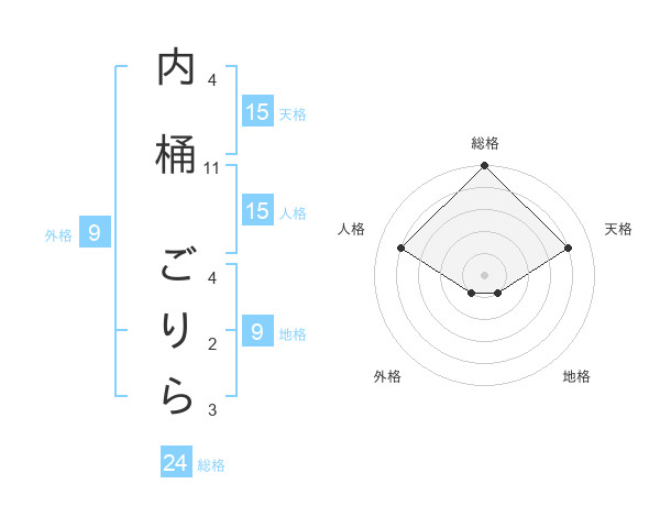 内桶 ごりらさんの総格は24画の5点!