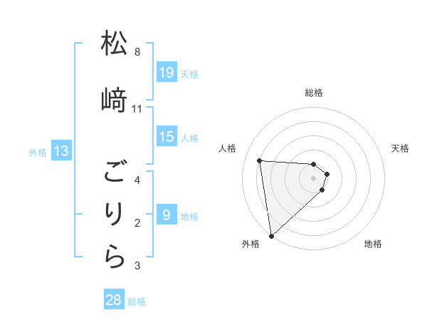 松﨑 ごりらさんを姓名の画数から五運を鑑定