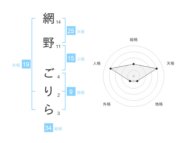 網野 ごりらさんを姓名の画数から五運を鑑定