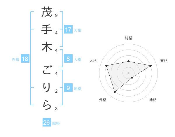 茂手木 ごりらさんの天格は17画の4点!