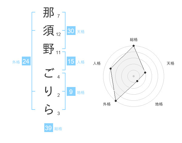 那須野 ごりらさんを姓名の画数から五運を鑑定