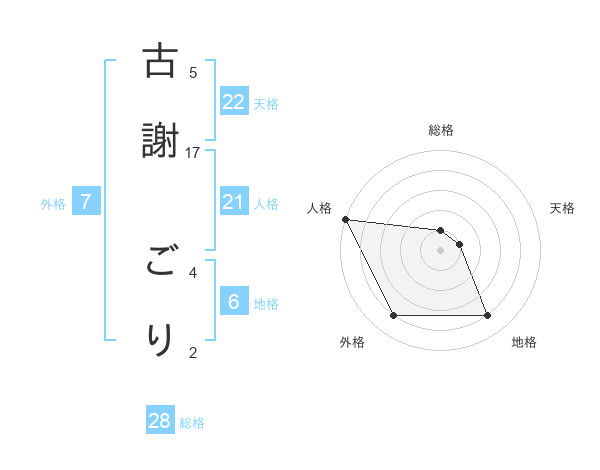古謝 ごりさんを姓名の画数から五運を鑑定