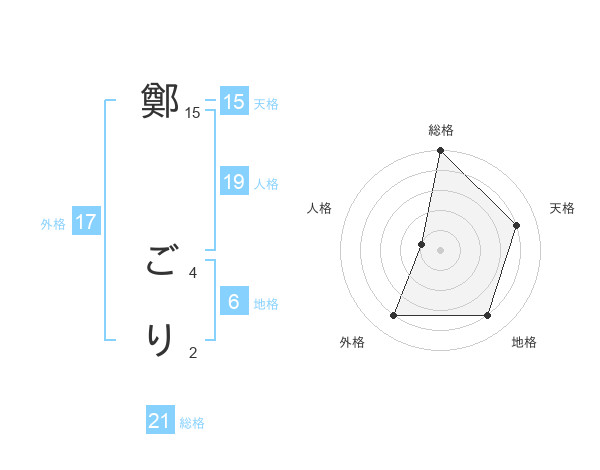 鄭 ごりさんの総格は21画の5点!