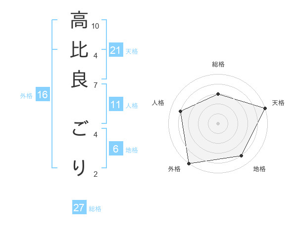 高比良 ごりさんの天格は21画の5点!