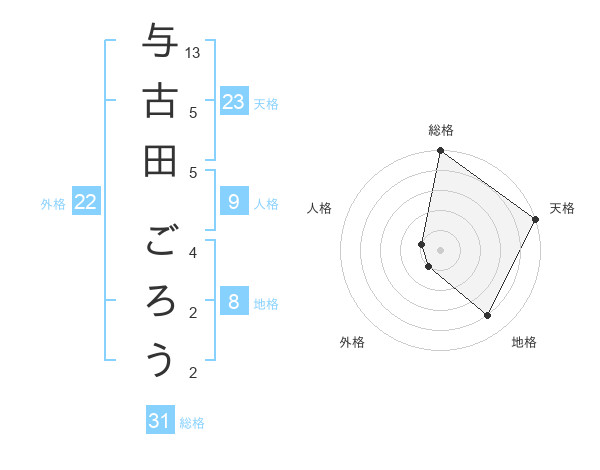 与古田 ごろうさんの天格は23画の5点!