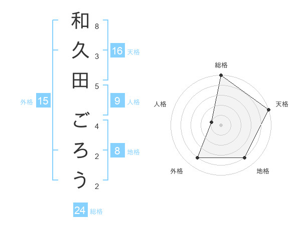 和久田 ごろうさんを姓名の画数から五運を鑑定