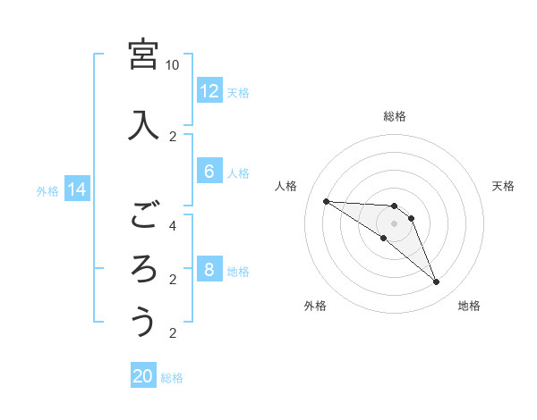 宮入 ごろうさんを姓名の画数から五運を鑑定