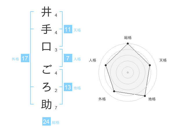 井手口 ごろ助さんを姓名の画数から五運を鑑定