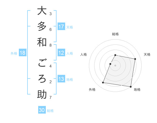 大多和 ごろ助さんの地格は13画の5点!