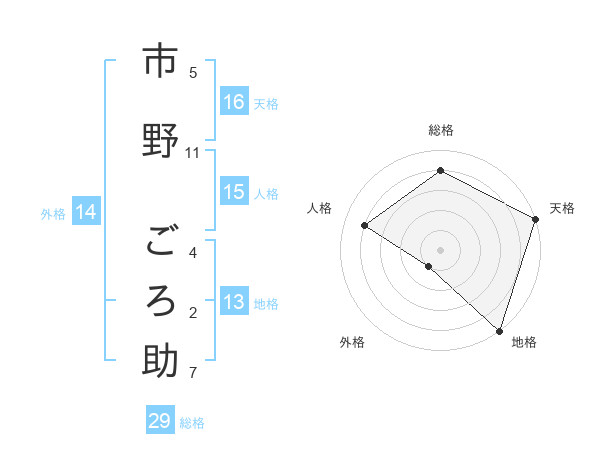 市野 ごろ助さんを姓名の画数から五運を鑑定