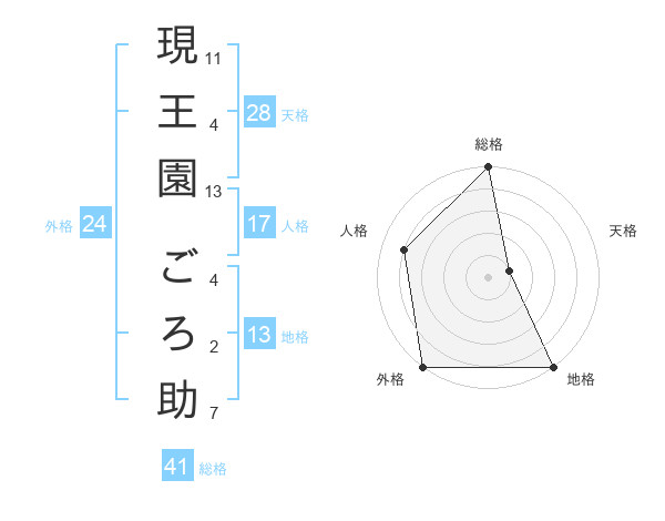 現王園 ごろ助さんを姓名の画数から五運を鑑定