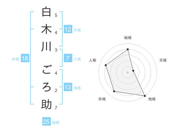 白木川 ごろ助さんを姓名の画数から五運を鑑定