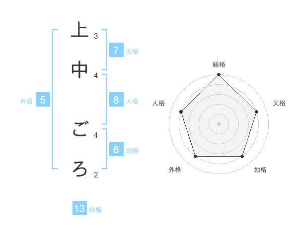 上中 ごろさんの総格は13画の5点!