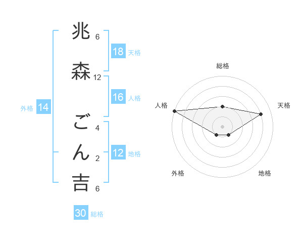 兆森 ごん吉さんを姓名の画数から五運を鑑定