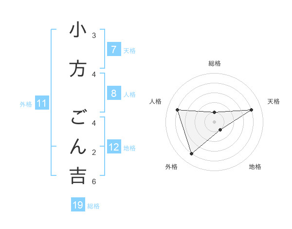 小方 ごん吉さんの総格は19画の1点