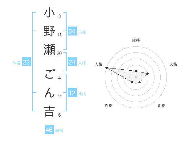 小野瀬 ごん吉さんを姓名の画数から五運を鑑定