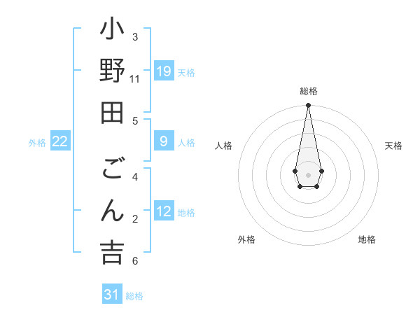 小野田 ごん吉さんの総格は31画の5点!