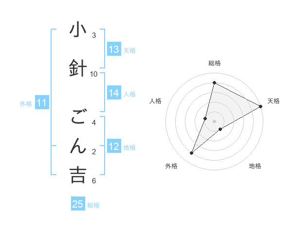 小針 ごん吉さんを姓名の画数から五運を鑑定