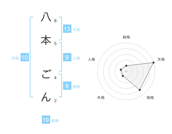 八本 ごんさんの天格は13画の5点!