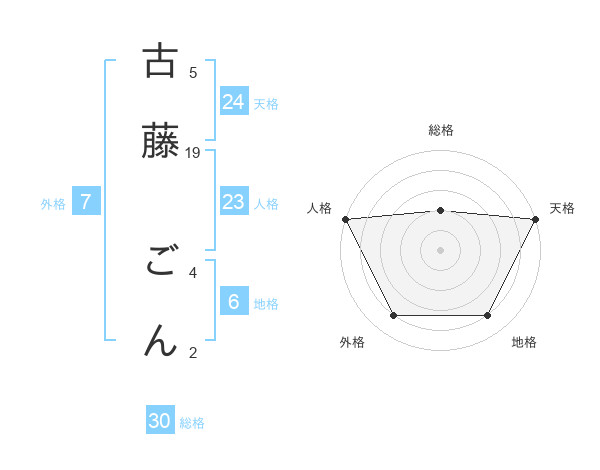 古藤 ごんさんの総格は30画の2点!
