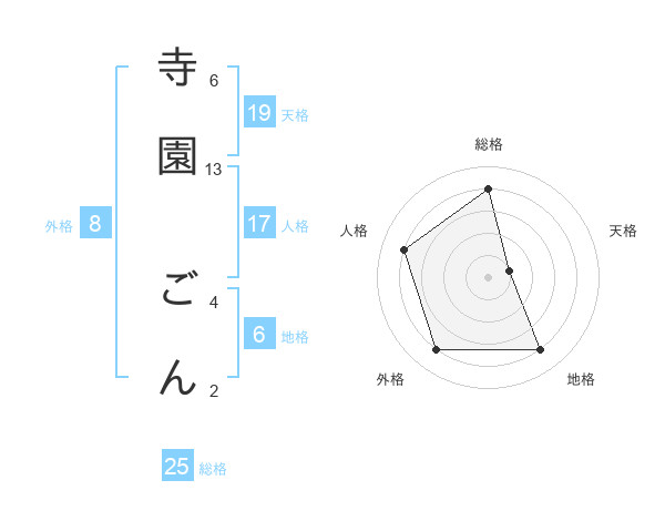 寺園 ごんさんの総格は25画の4点!
