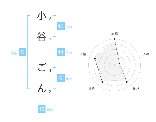 小谷 ごんさんを姓名の画数から五運を鑑定