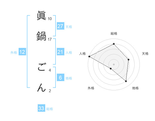 眞鍋 ごんさんを姓名の画数から五運を鑑定