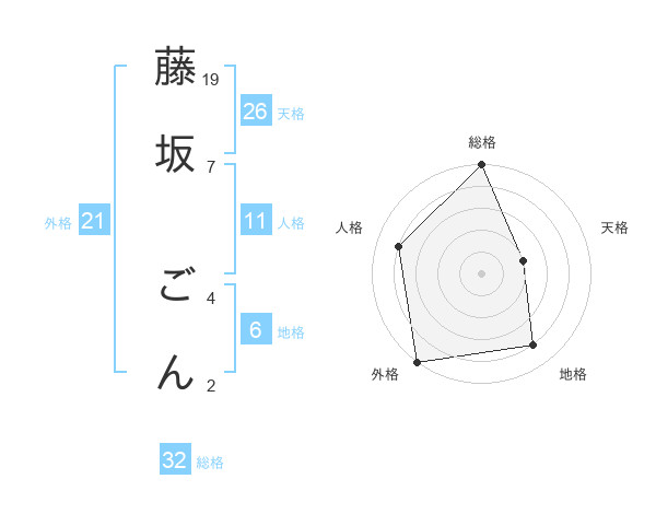藤坂 ごんさんを姓名の画数から五運を鑑定