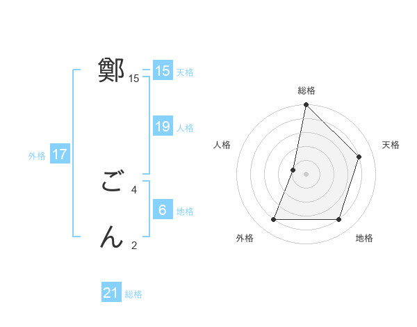 鄭 ごんさんを姓名の画数から五運を鑑定