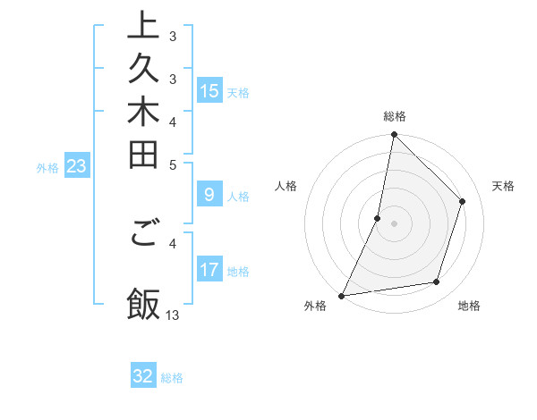 上久木田 ご飯さんを姓名の画数から五運を鑑定