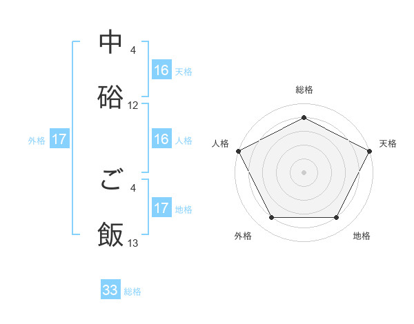 中硲 ご飯さんの地格は17画の4点!