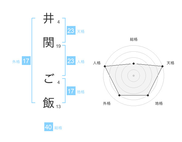 井関 ご飯さんの天格は23画の5点!