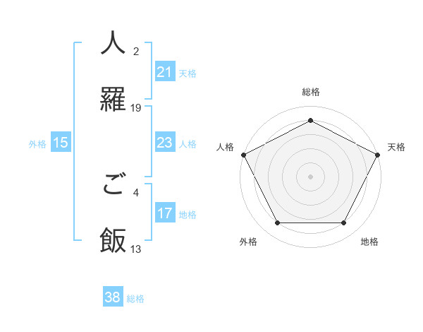 人羅 ご飯さんを姓名の画数から五運を鑑定