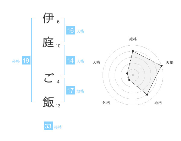 伊庭 ご飯さんの天格は16画の5点!